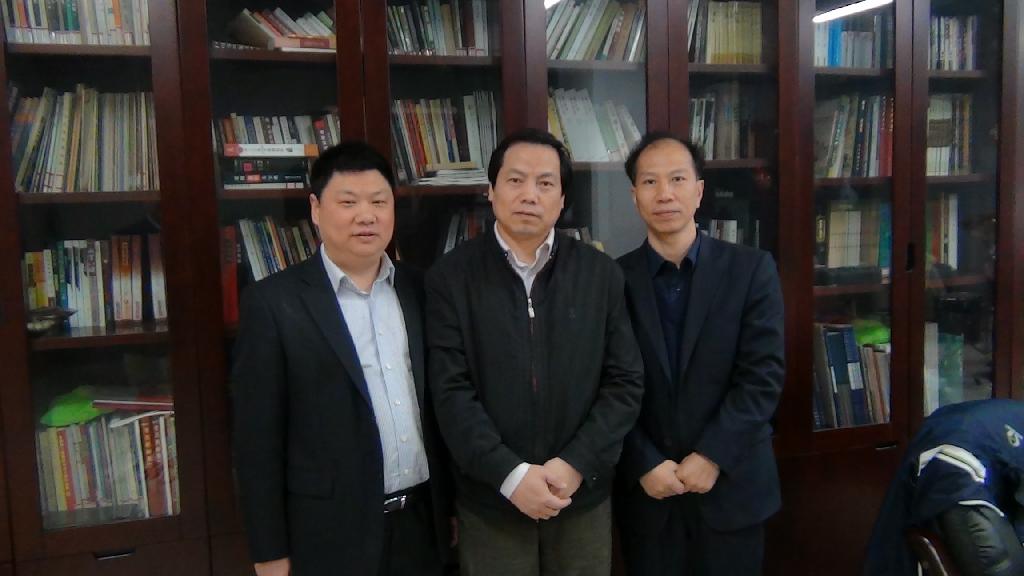 中央财经大学副校长陈明教授(中)工信部司长江宣林博士(右)与我院领导在一起