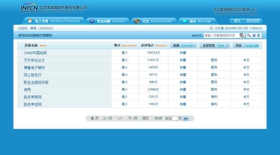 第四步:进入图书馆资源列表界面,如下图。