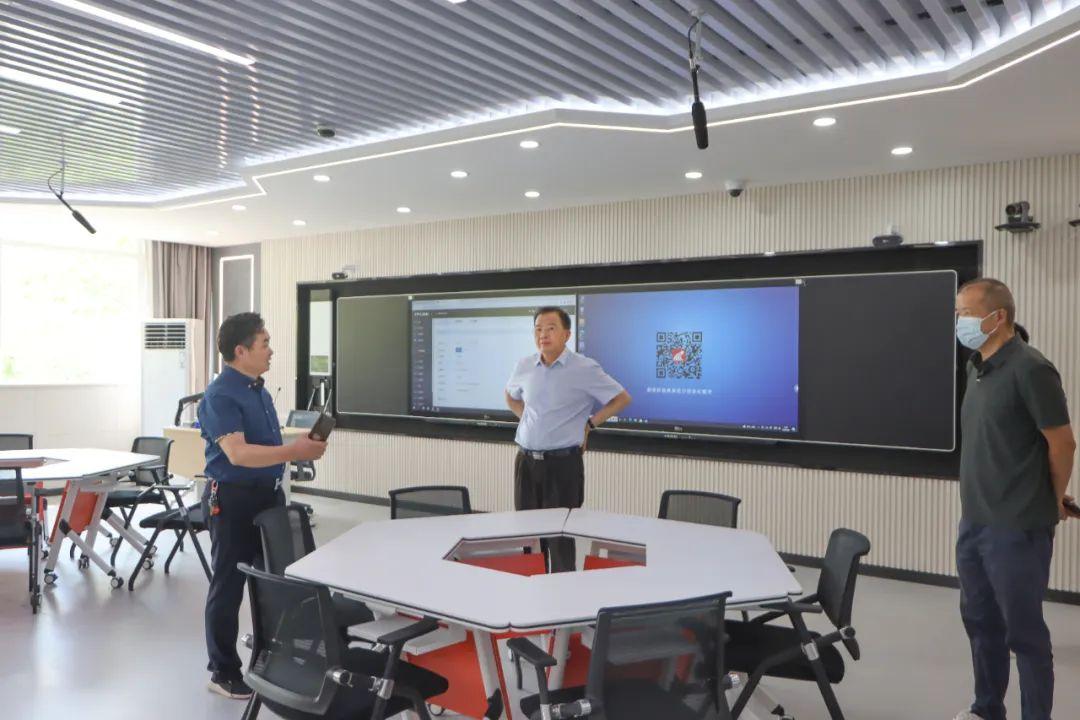李勇校长一行听取了网络中心工作人员关于智慧教室建设情况汇报;到每间教室一一查看座位数量、设备配置等,并对中控系统、课堂互动系统、录播系统实际操作进行观看了解。